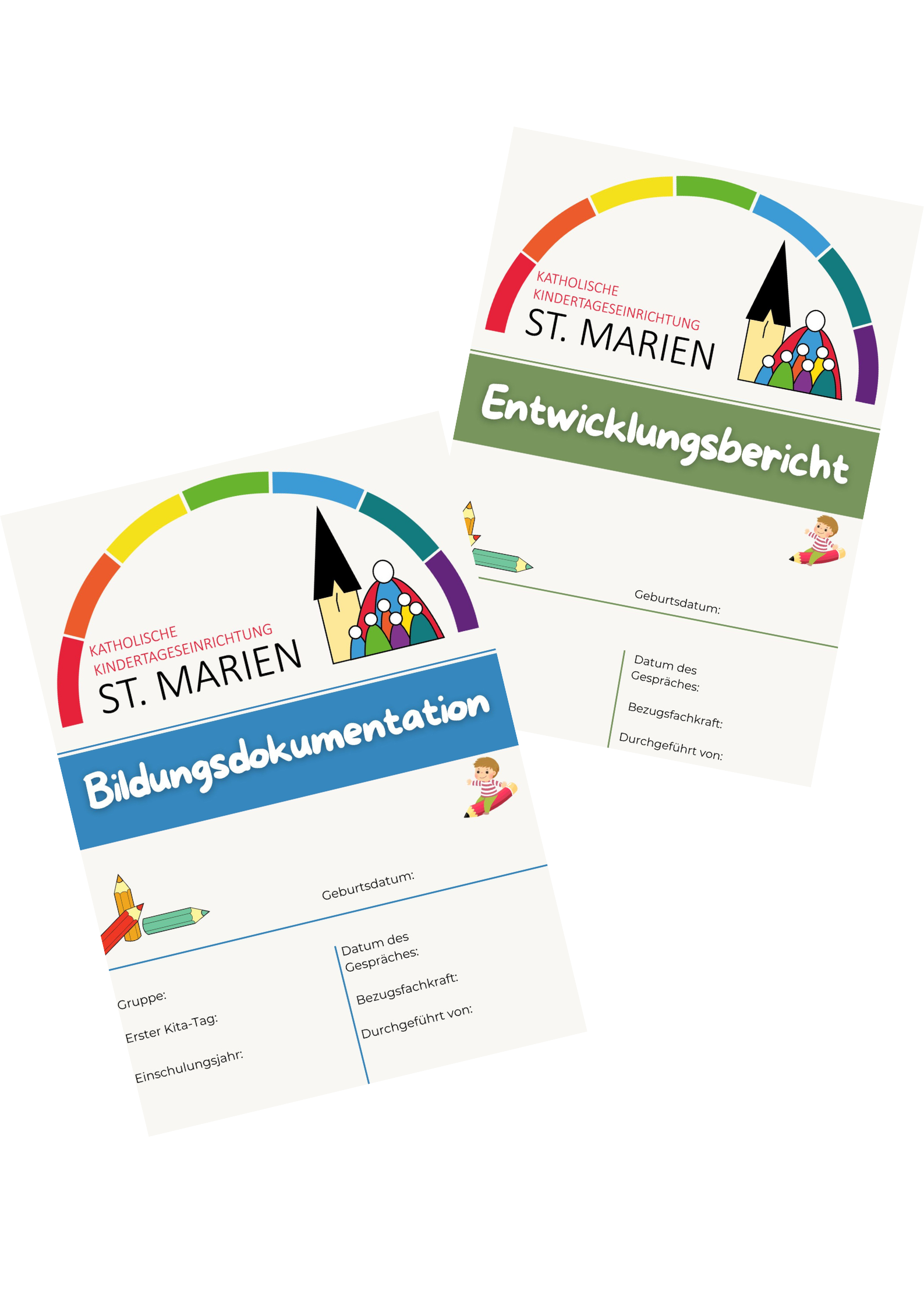 Ergänzt wird die Bildungsdokumentation durch eine individuelle Sammelmappe des Kindes. Zusammen begleiten Bildungsdokumentation, Portfolio-Ordner und Sammelmappe das Kind durch die gesamte Kindergartenzeit und dienen den Fachkräften als Beobachtungsgrundlage sowie für Gespräche mit den Eltern.